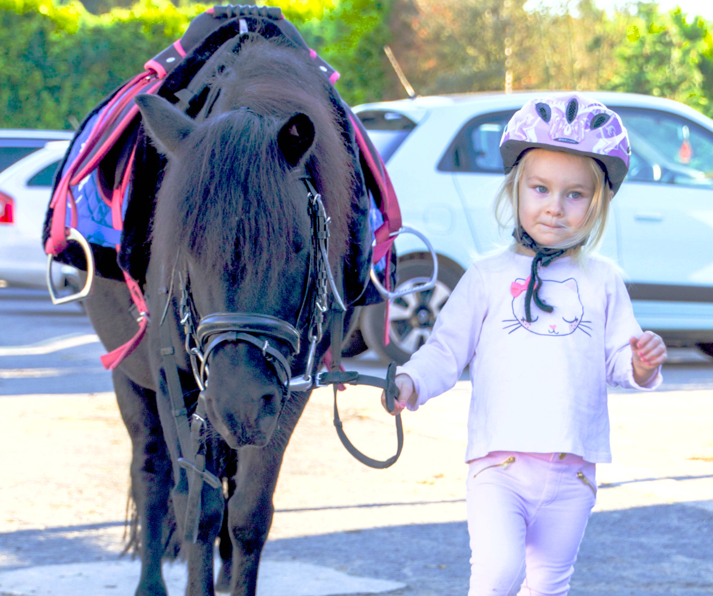 Ein tolles Erlebnis für Kinder, die noch nie auf einem Pony saßen, ist eine geführte Runde auf dem Pony.